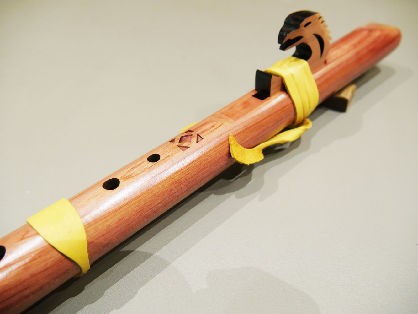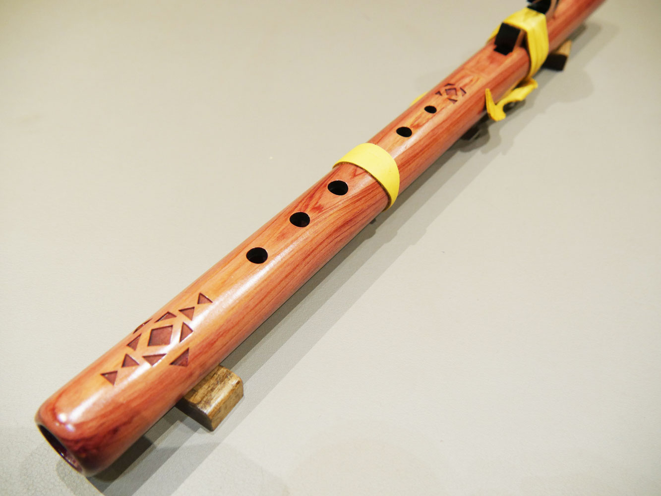 インディアンフルートは日本ではまだまだ馴染の少ない楽器ですが、実は音色にとてもインパクトがありまして、息を入れた瞬間、木の繊維が振動し、直管で太めな円筒の中を通り抜け、何ともいえない癒しの音色を奏でます。
